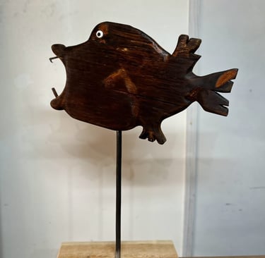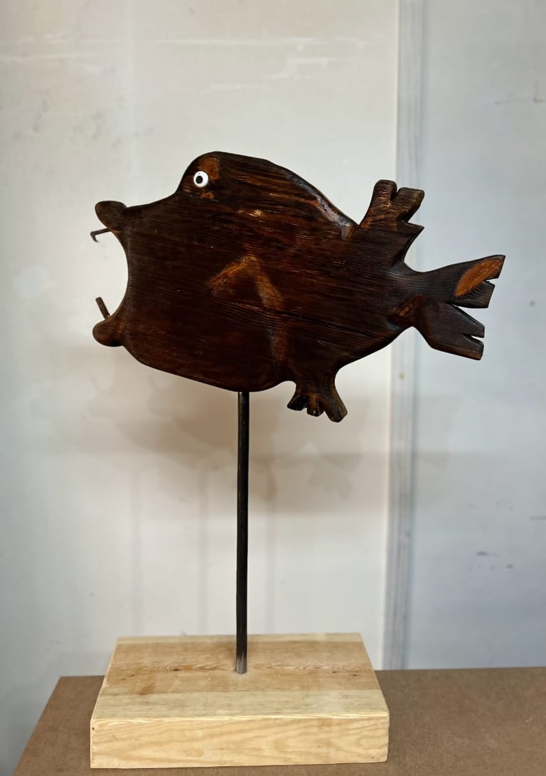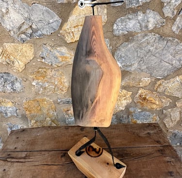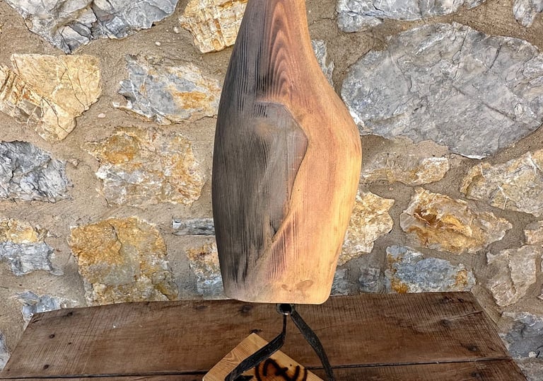 Obras nacidas del instinto y la memoria. Las emociones se esculpen en madera recuperada y hierro oxidado, creando piezas únicas que vibran con fuerza y sutileza.